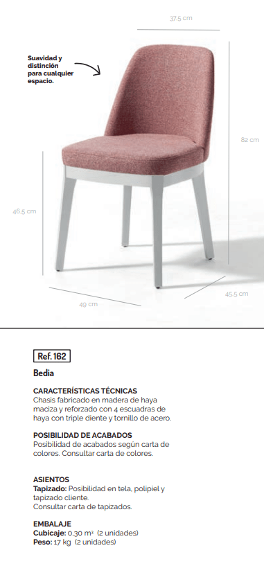 Tapizado: Posibilidad en tela, polipiel y tapizado cliente.